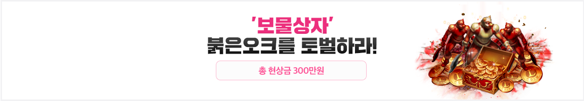- 이벤트 내용 : 붉은오크를 잡아 보물상자를 획득하세요!